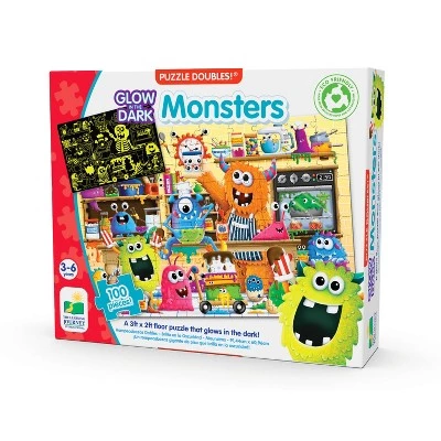 - KEY FEATURES – This Puzzle Doubles series takes the concept of a traditional puzzle to a whole new level! After assembling the 100-piece puzzle, turn off the lights and be amazed as it glows in the dark. Each Glow in the Dark puzzle measures 3’ X 2’! Ages 3+ years.
