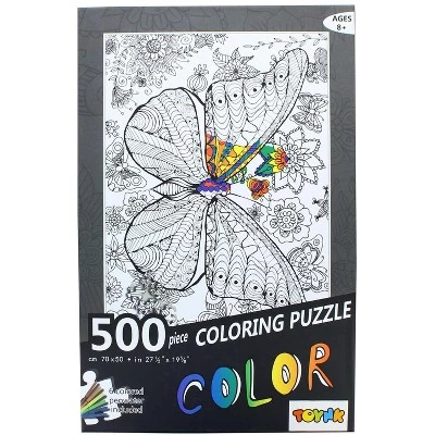Toynk Butterfly 500 Piece Coloring Jigsaw Puzzle + 6 Markers
