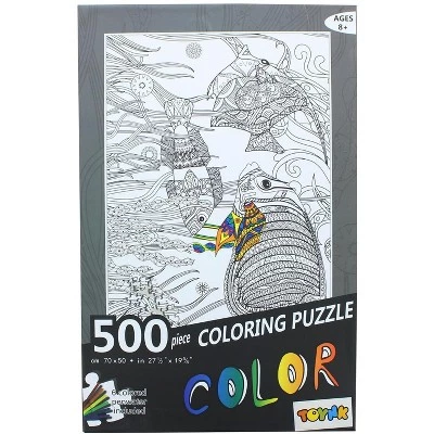 Unwind with this fun coloring puzzle! First you assemble the 500-piece puzzle. Next, personalize it with the six (6) included color markers! Approximate size of the assembled puzzle: 27 1/2 x 19 5/8 inches.